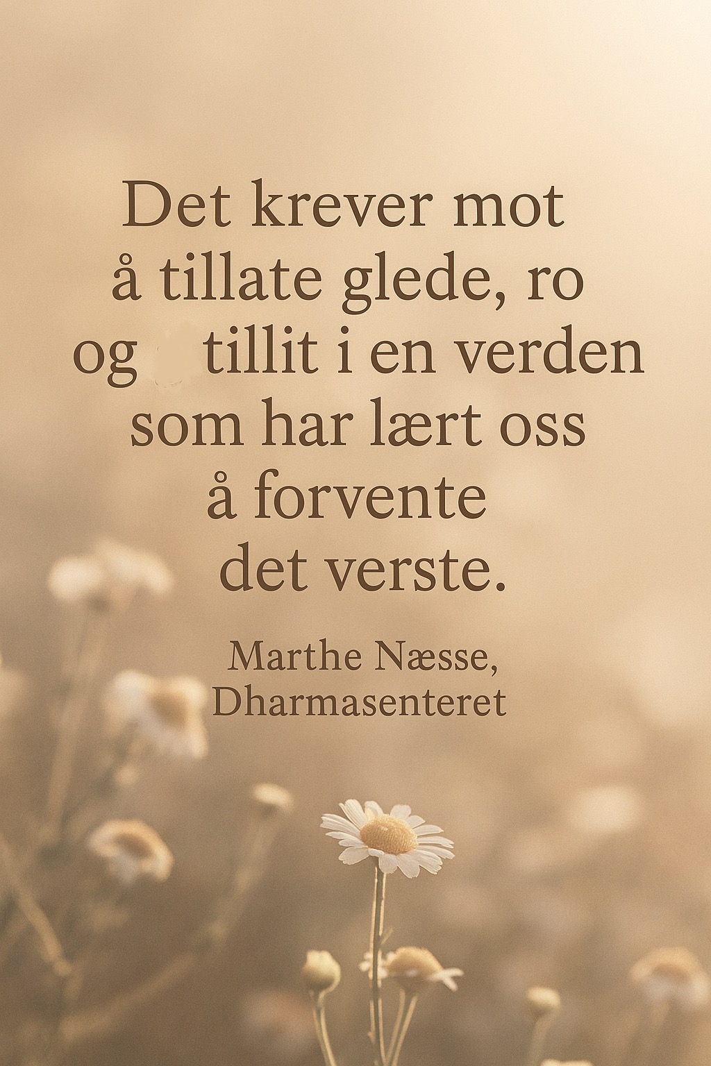 Marthe Næsse er grunnlegger av Dharmasenteret og har i mange år hjulpet mennesker å finne tilbake til trygghet, verdighet og hvile gjennom å bli kjent med nervesystem, kropp og sinn, følelser og intuisjon.