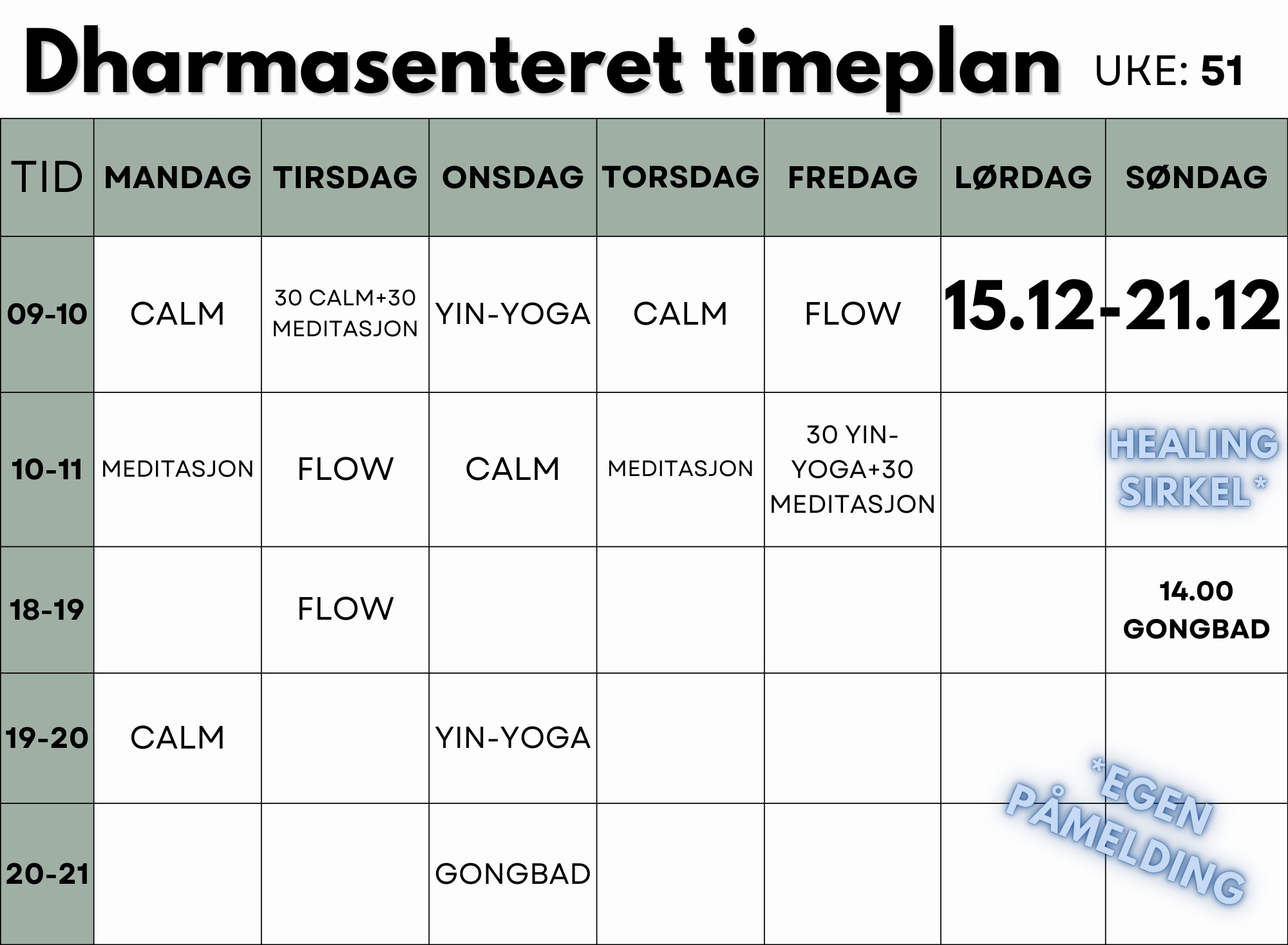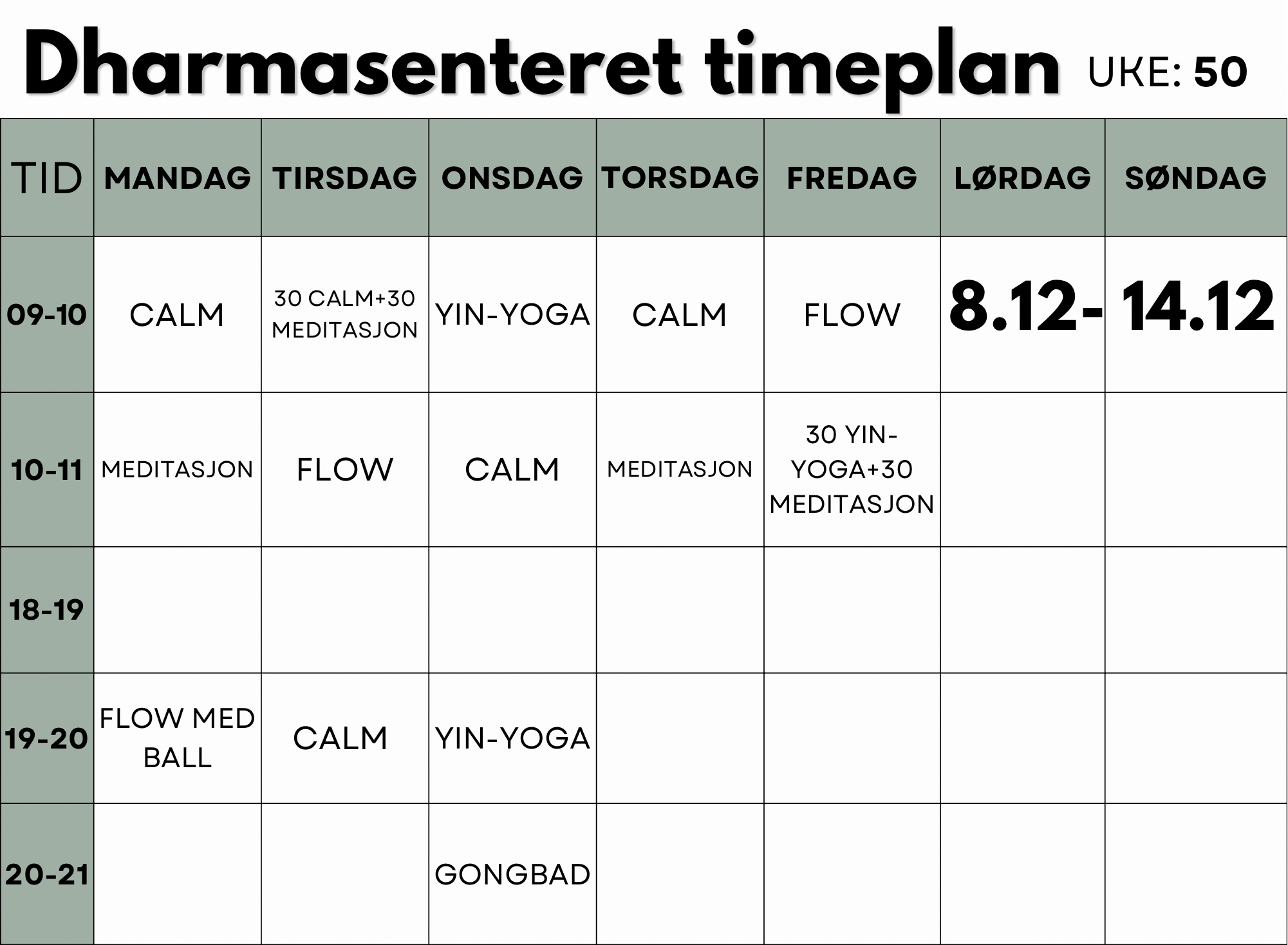 FASTE GRUPPETIMER HVER UKE