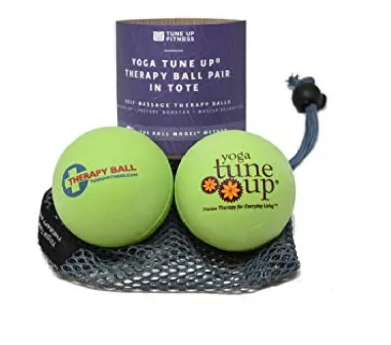 Det er yoga med små baller (ikke stor yogaball), som er veldig godt for stive og støle kropper.
